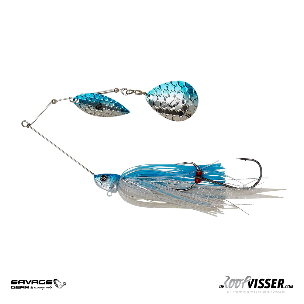 De Da'Bush is ontworpen om vis na vis sterk te blijven en heeft een sterk roestvrijstalen frame met gesloten klikoog, ideaal voor het bevestigen van onderlijnen en snel wisselen. Met een ring op de buik kun je indien nodig ook extra gewicht toevoegen. De bladen exploderen in een verleidelijke helikopterbeweging zodra het kunstaas het water raakt. Perfect voor het vissen door lelievelden en sterk begroeide viswateren. Geleverd met een verwijderbare stingerhaak. Op zoek naar de perfecte spinnerbait? Denk zekers eens aan de Da'Bush van Savage Gear. Verkrijgbaar in diverse lengtes met bijbehorende gewichten en veel vangende kleurstellingen!